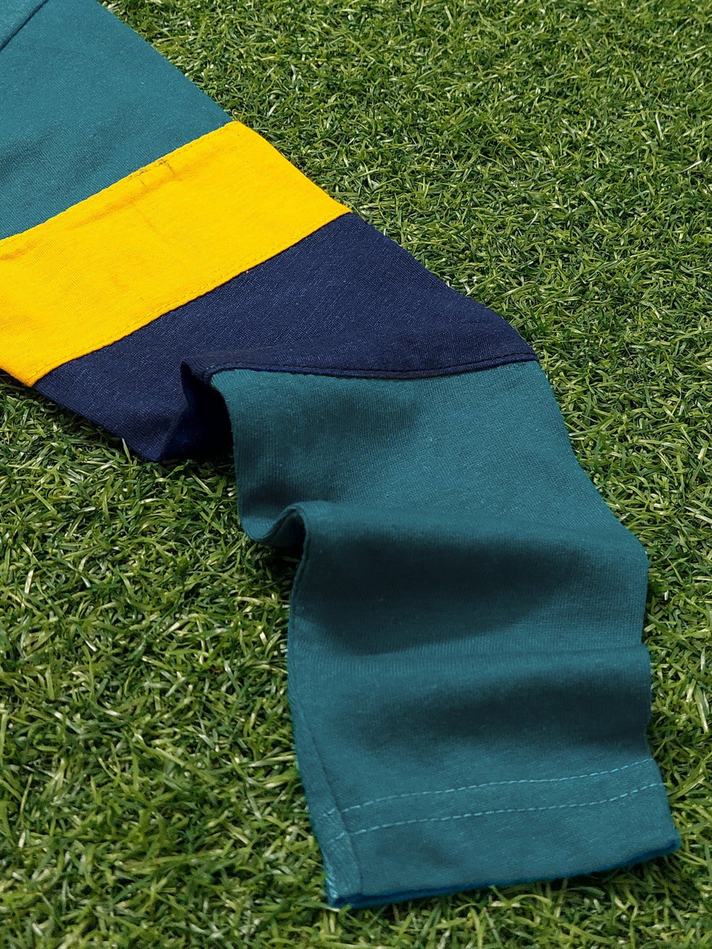Crew Neck Long Sleeve Single Jersey Tee Shirt For Kids-Cyan Blue With Panels-AZ146