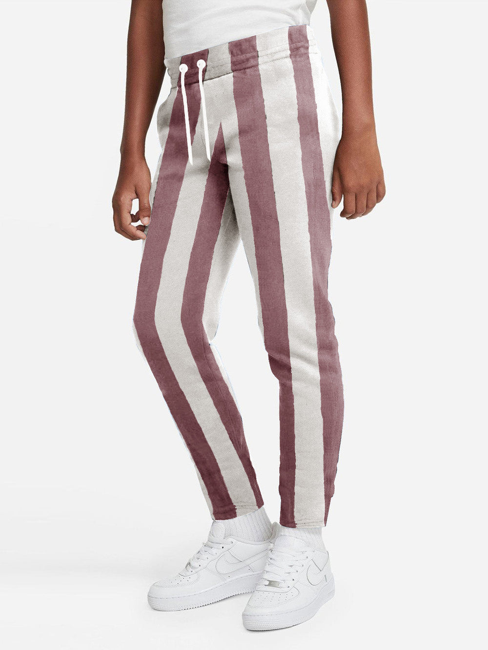 George Single Jersey Trouser For Kids-Off White with Maroon Stripes-SP912
