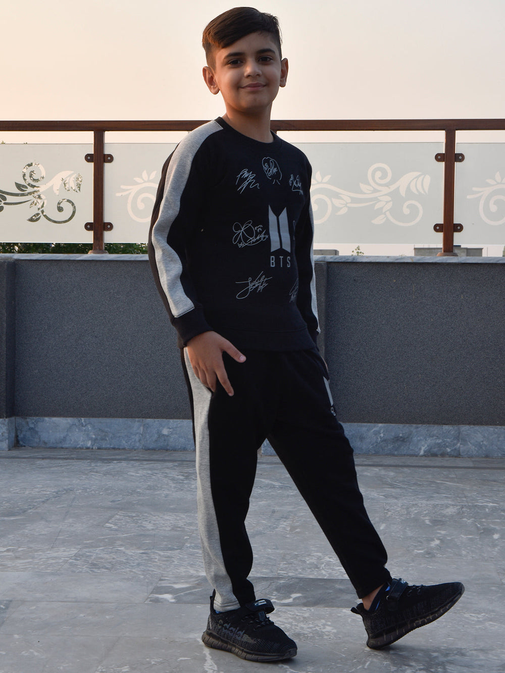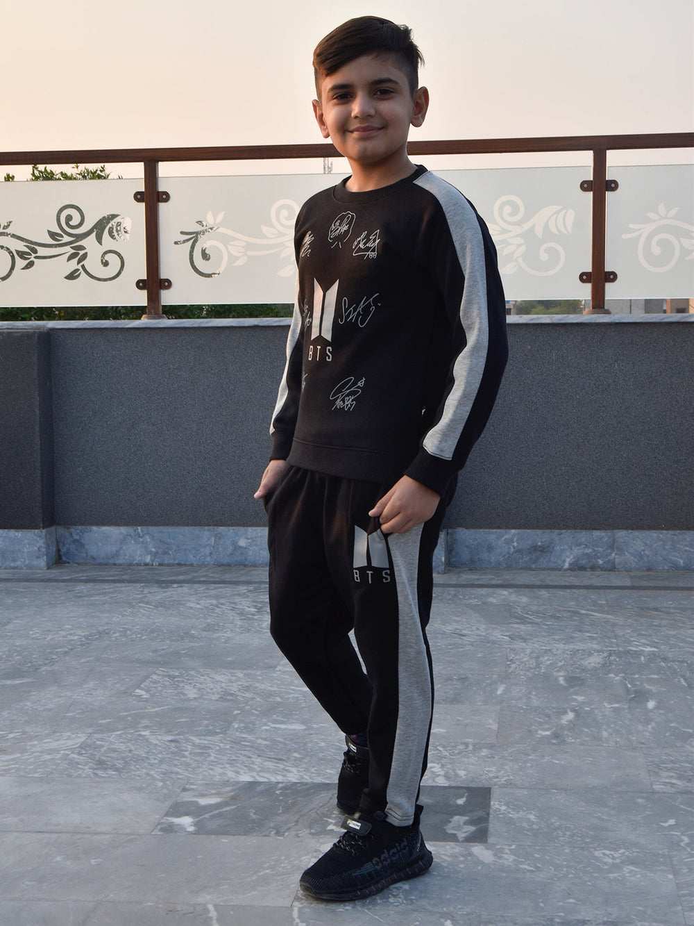 BTS Fleece Tracksuit For Kids-Black with Grey-BR868