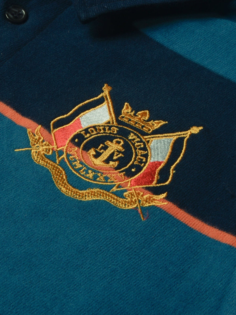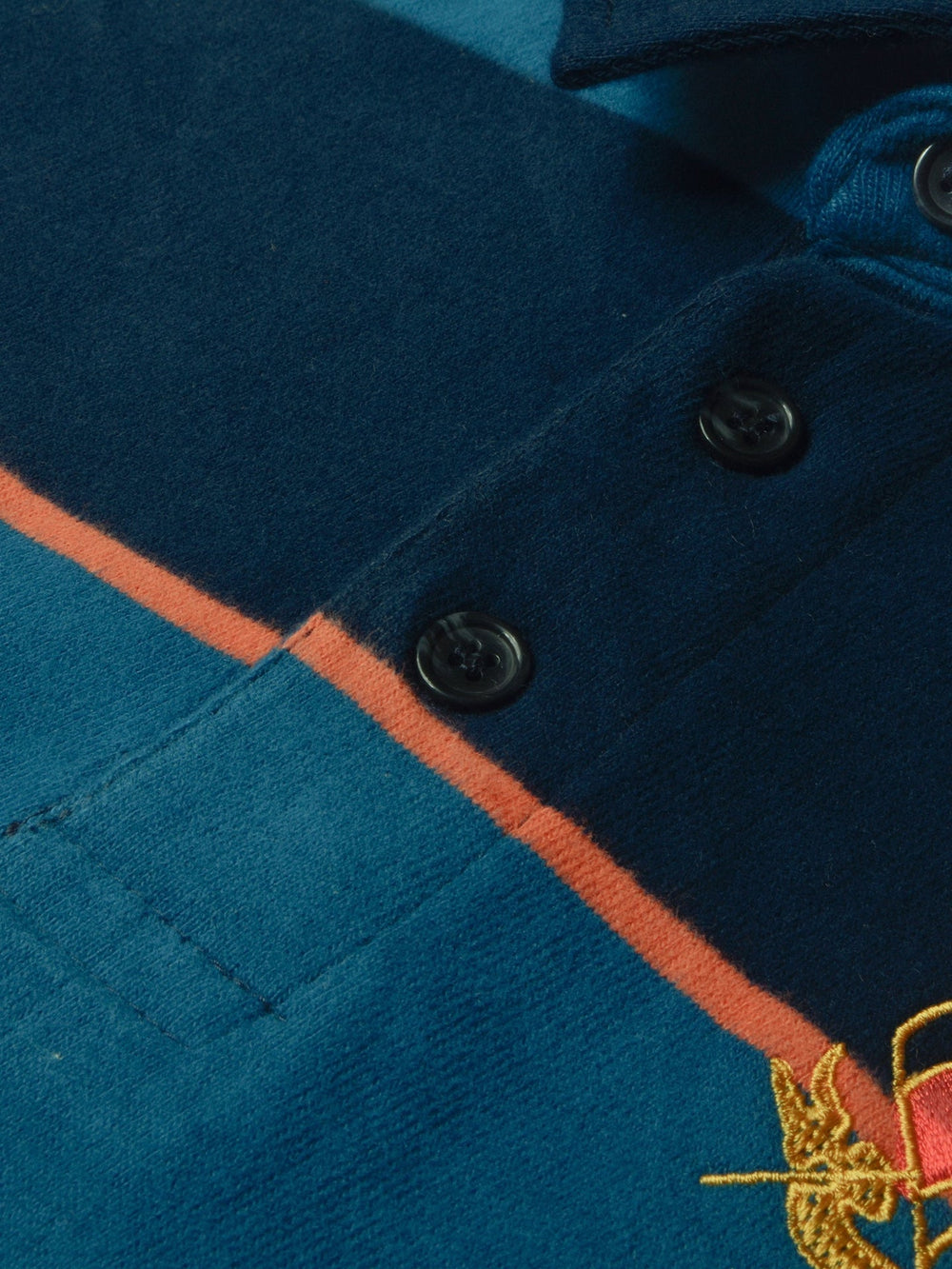 Louis Vicaci Long Sleeve Polo Shirt For Men-Prussian Blue with Navy-BR901