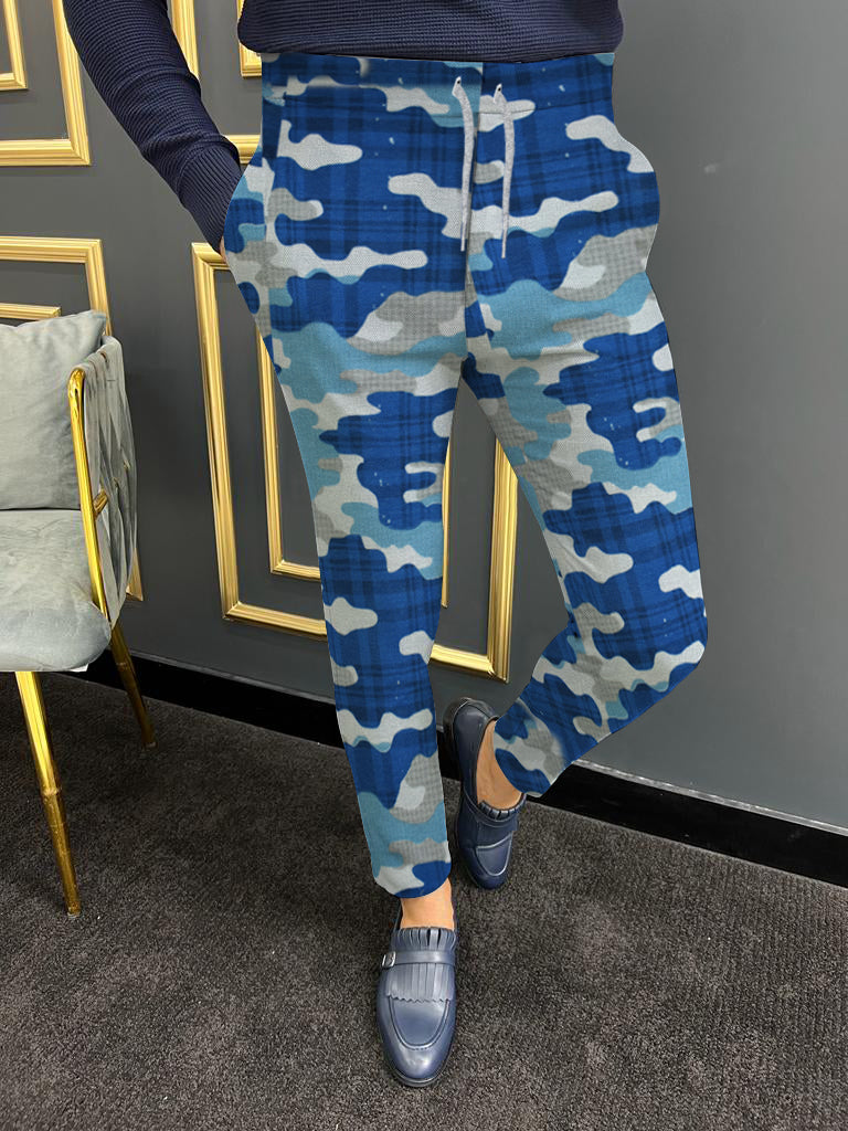 Louis Vicaci Slim Fit Single jersey Trouser Pent For Men-Blue Camouflage Print-BR522