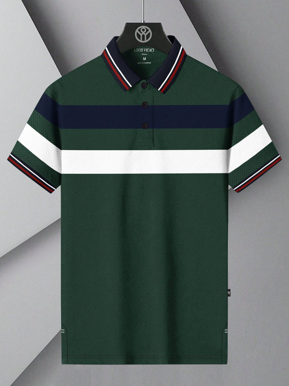 LV Summer Dry Fit Polo Shirt For Men-Green with Stripe-BE1564/BR13780