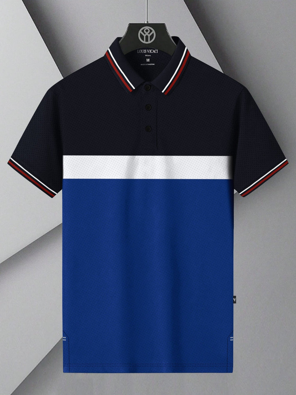 LV Summer Dry Fit Polo Shirt For Men-Navy with White & Blue Panels-BE1742/BR13923