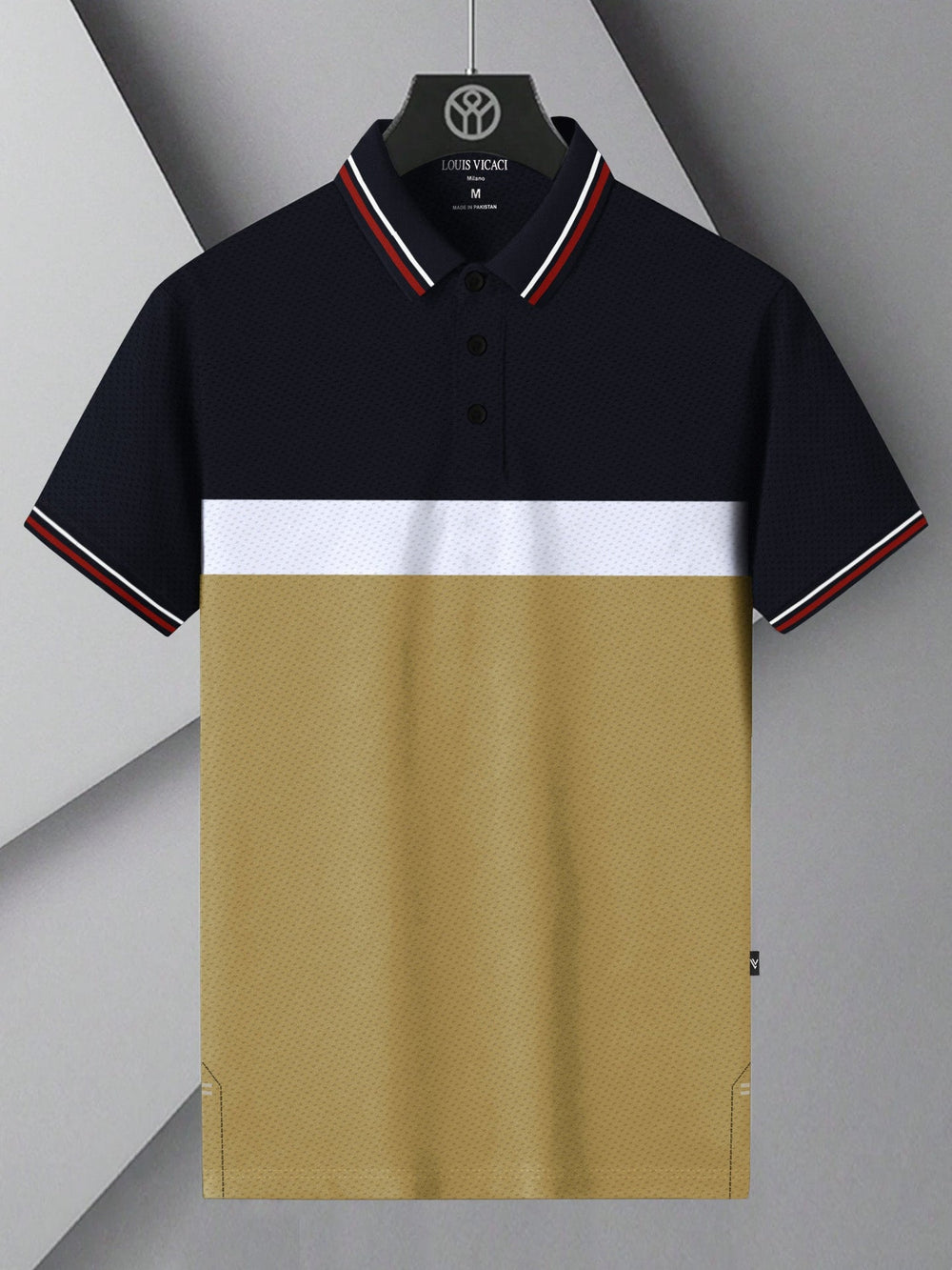 LV Summer Dry Fit Polo Shirt For Men-Navy with White & Camel Panels-BE1713/BR13918
