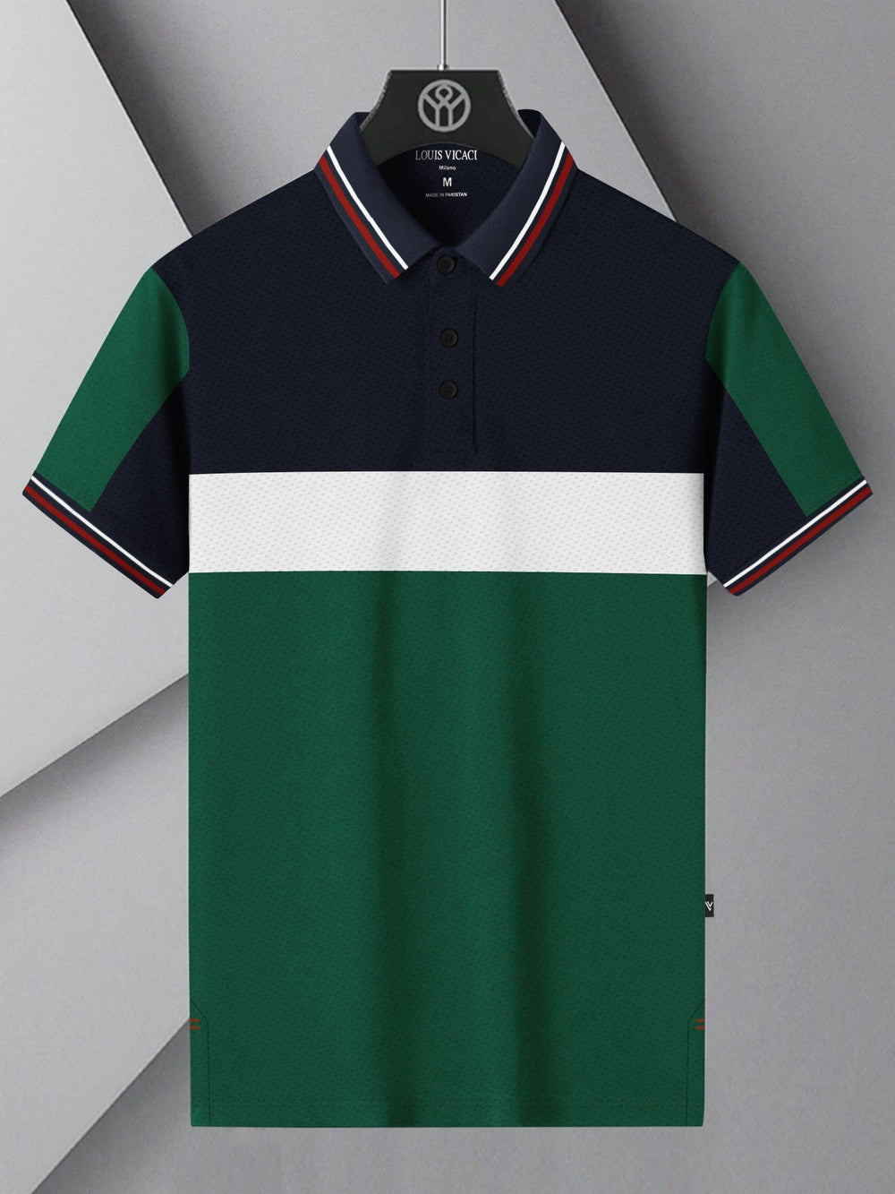LV Summer Dry Fit Polo Shirt For Men-Navy with White & Green Panel-BE1394/BR13634