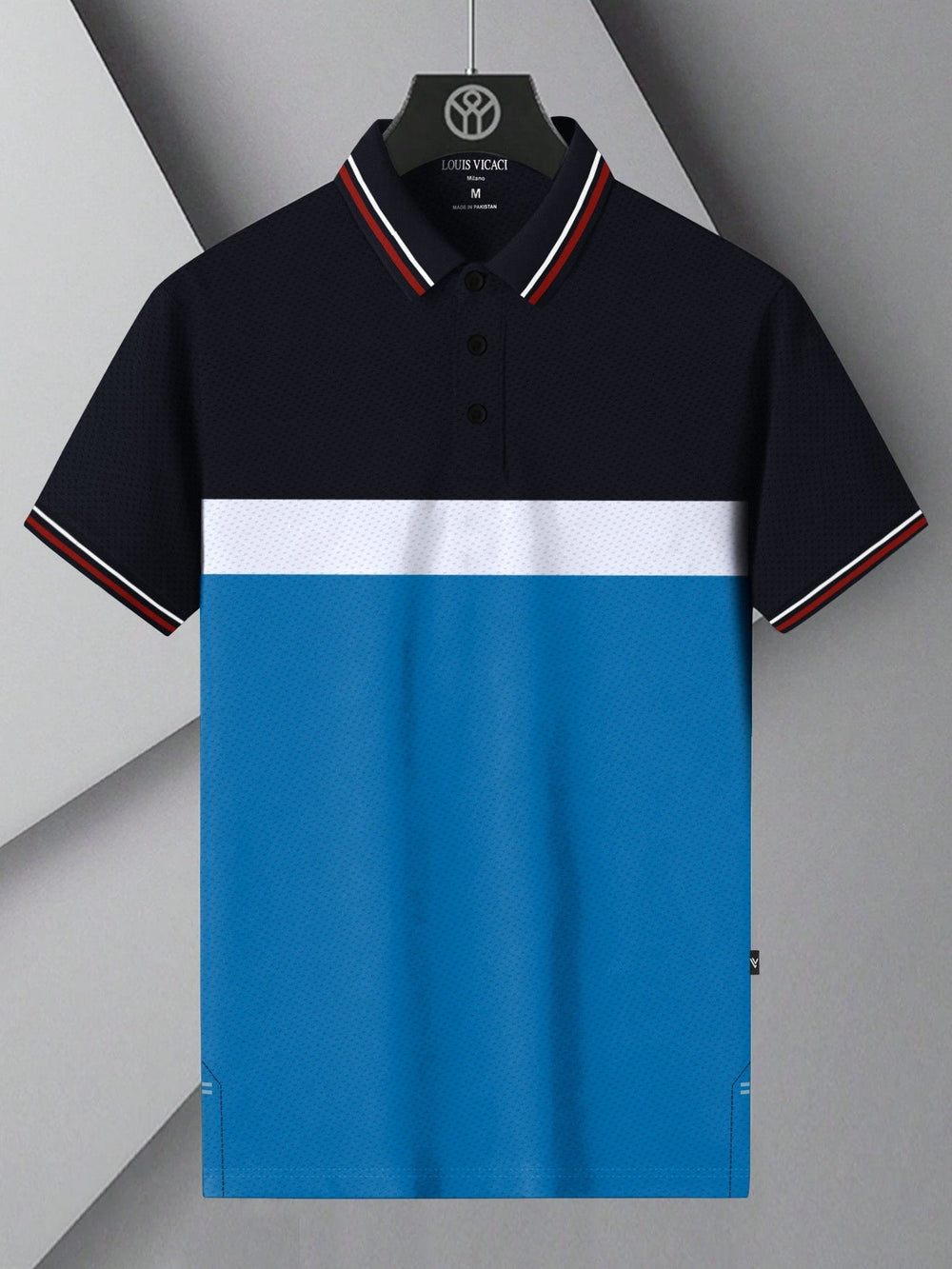 LV Summer Dry Fit Polo Shirt For Men-Navy with White & Sky Panel-BE1698/BR13913