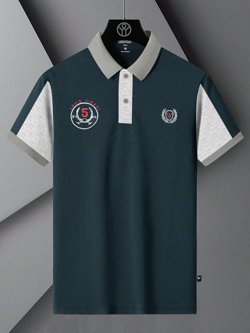 LV Summer Polo Shirt For Men-Navy & White Melange-SP1584