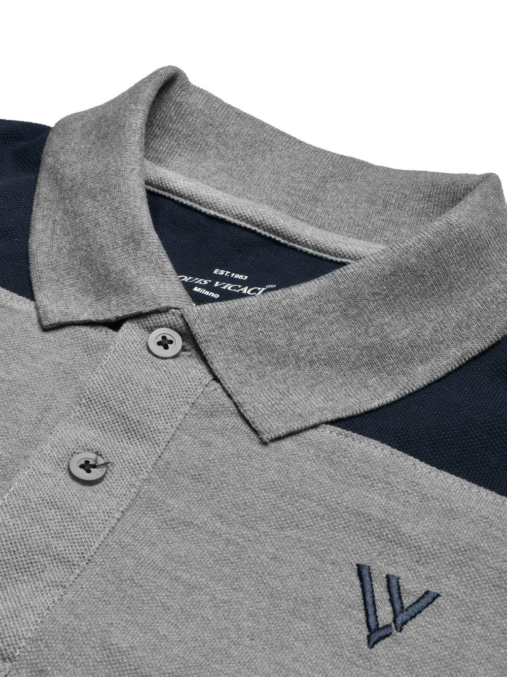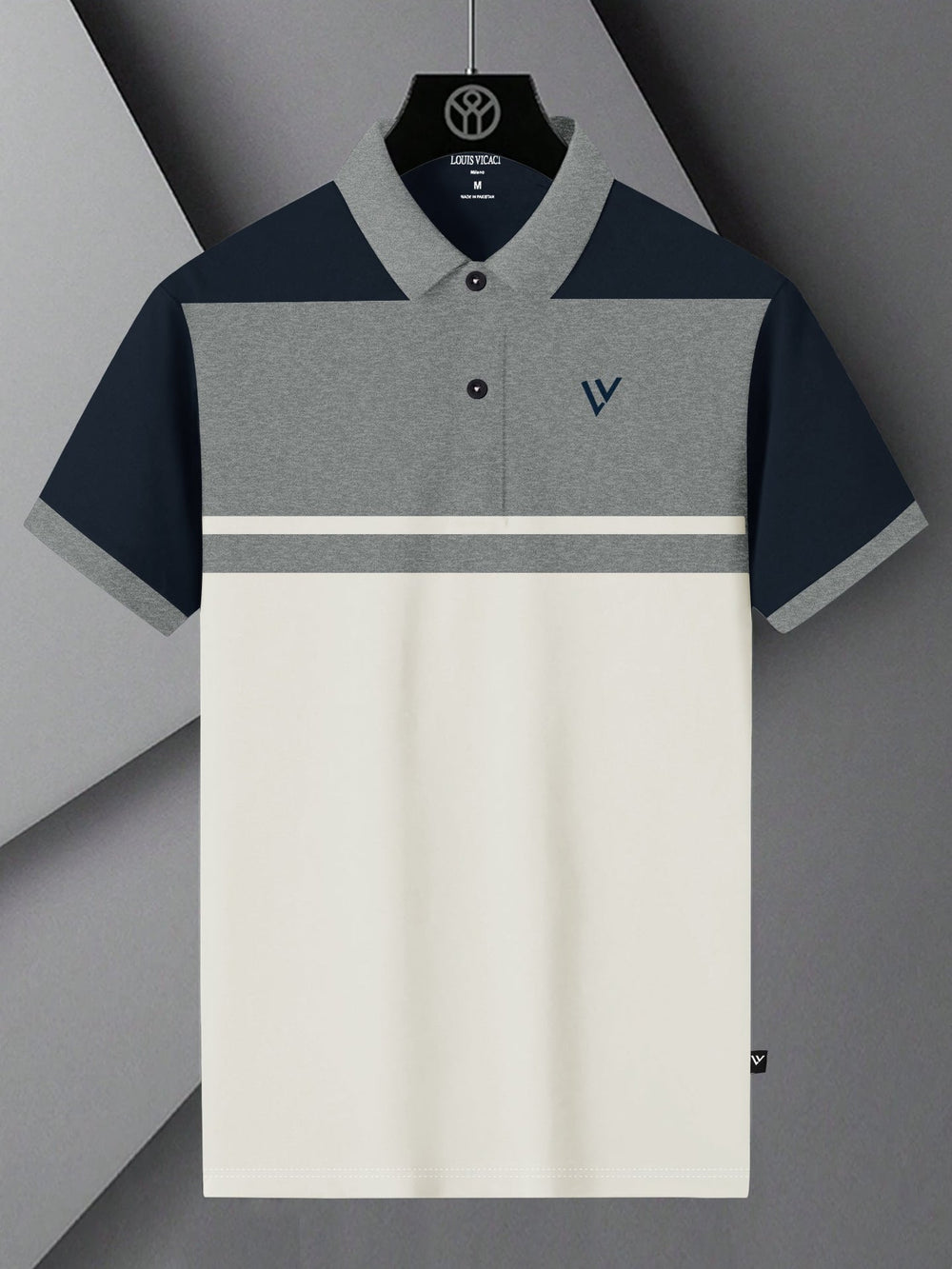 LV Summer Polo Shirt For Men-Off White with Grey & Navy-SP1587/RT2382