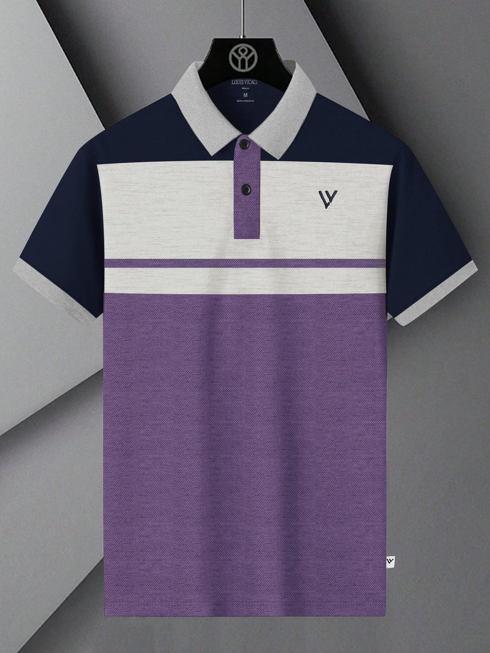 LV Summer Polo Shirt For Men-Purple Melange with White Melange & Navy Panel-BE883