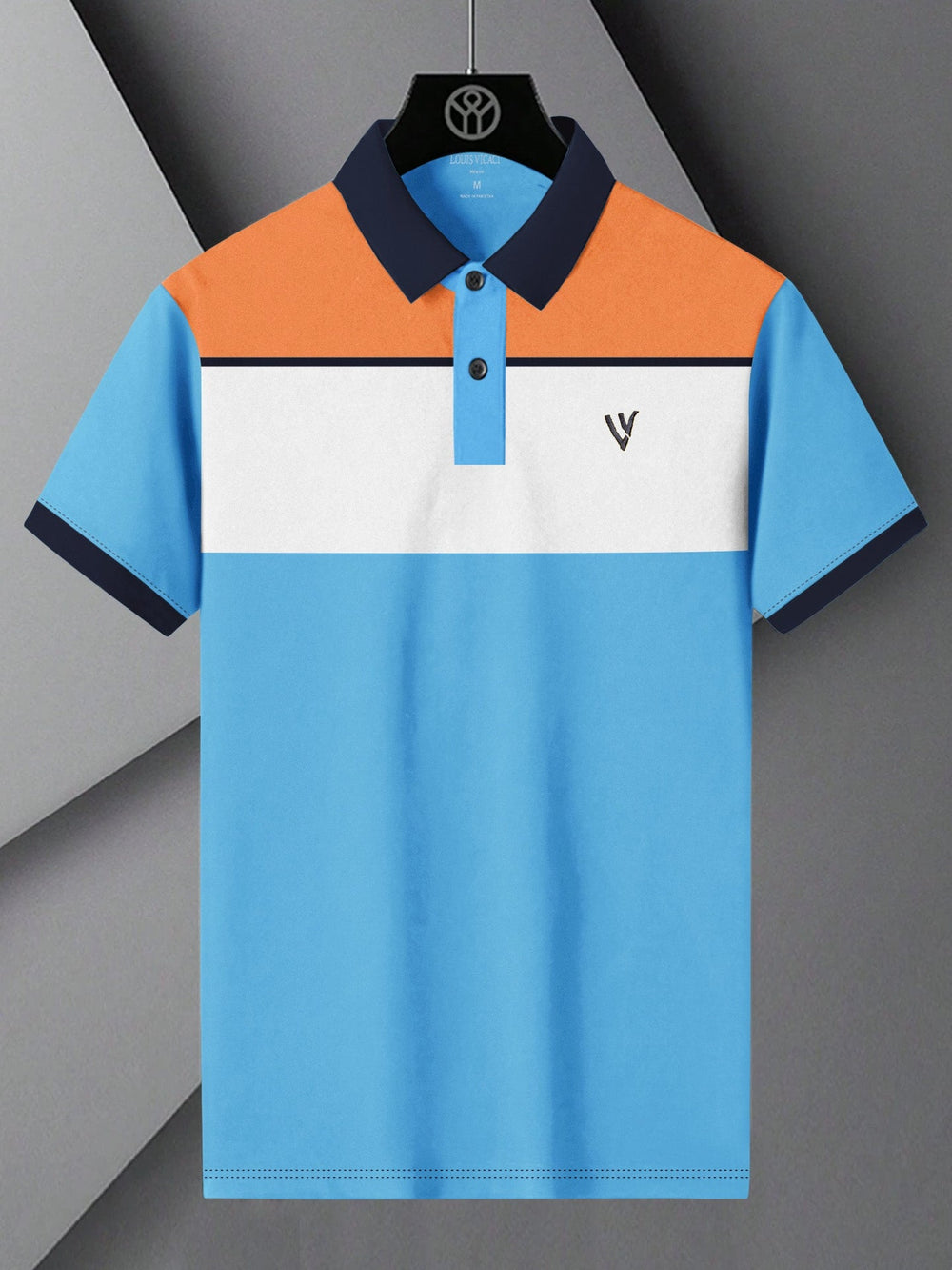 LV Summer Polo Shirt For Men-Sky Blue with White & Orange Panel-BE821/BR13061
