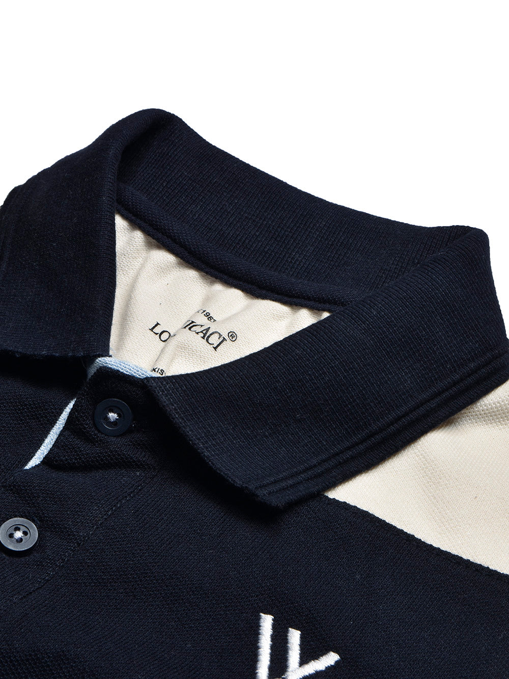 LV Summer Polo Shirt For Men-Sky with Navy & Off White Panel-BE880/BR13118