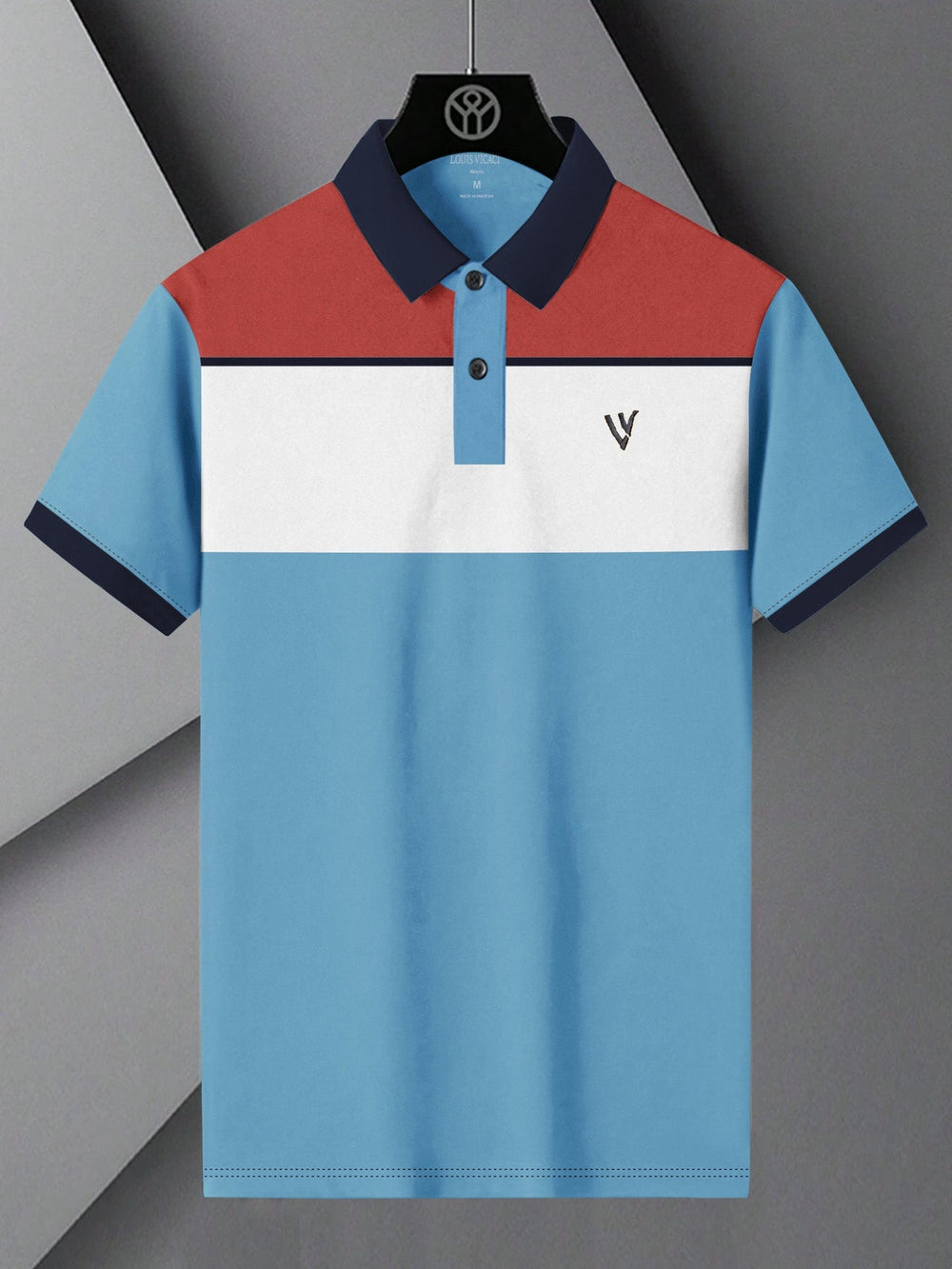 LV Summer Polo Shirt For Men-Sky with White & Coral Orange Panel-BE776/BR13023