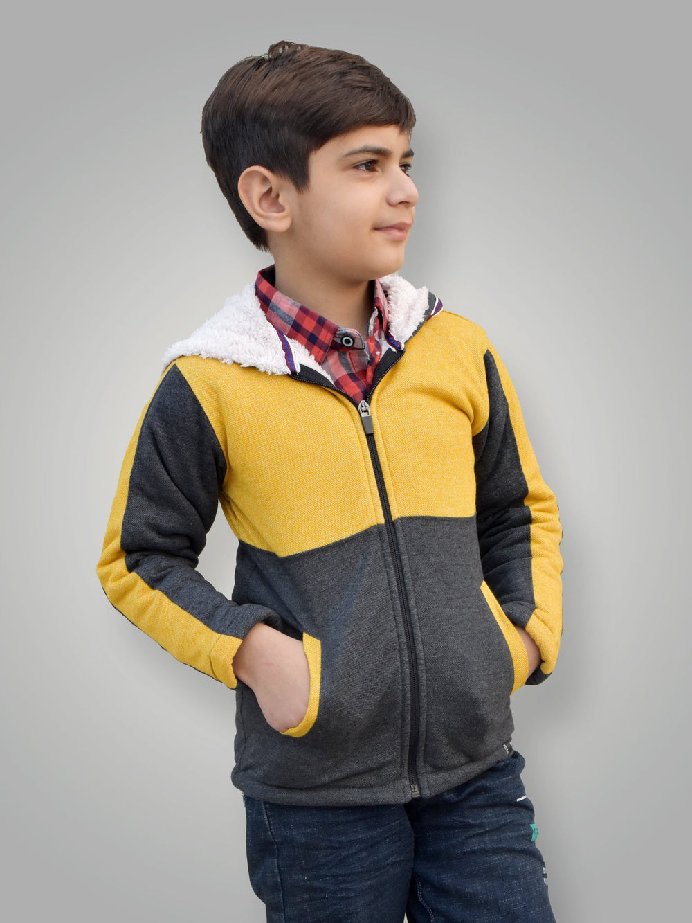 Mango Stylish Inner Fur Zipper Hoodie For Kids-Yellow Melange & Charcoal Melange-BE135/BR944
