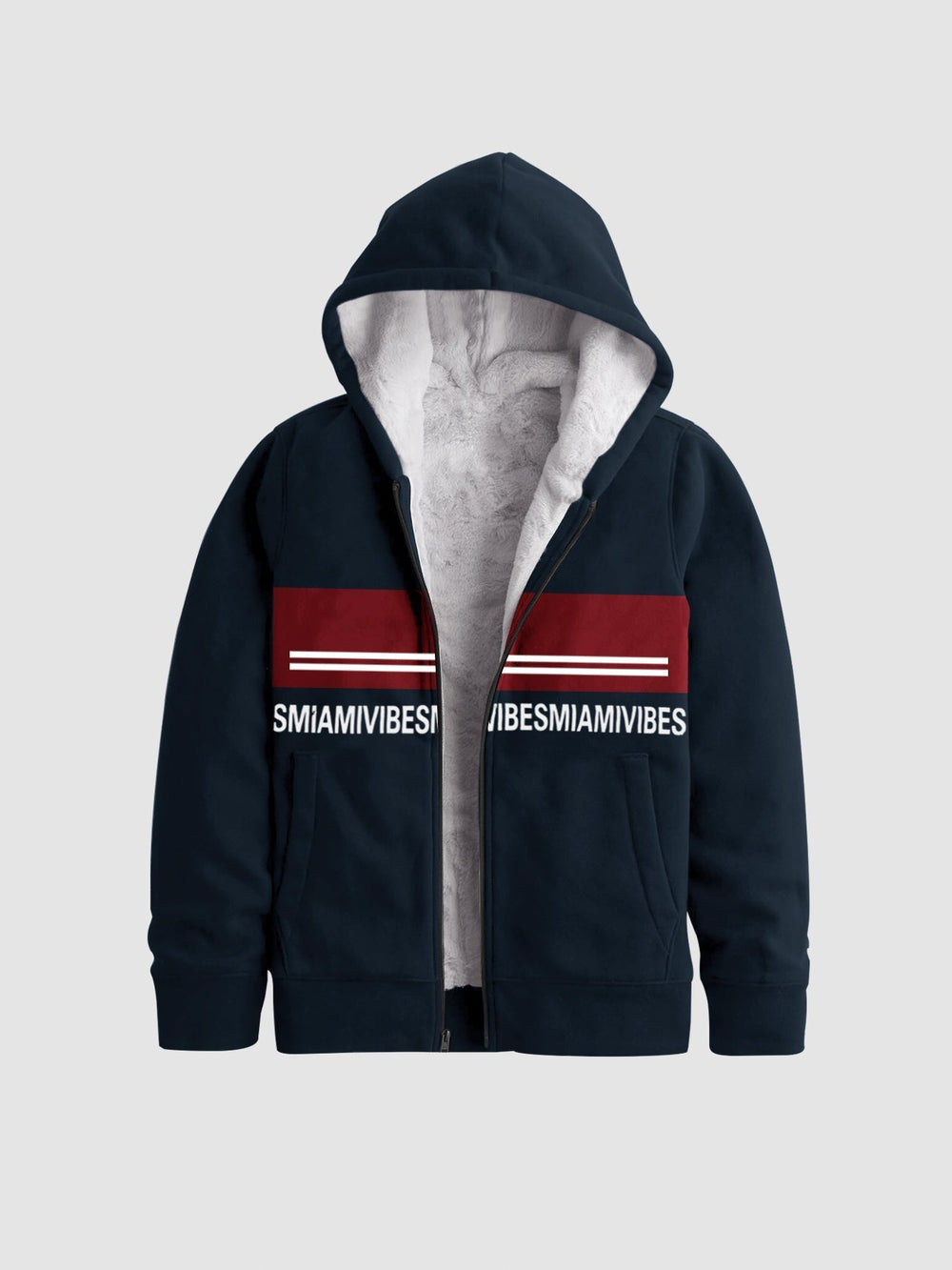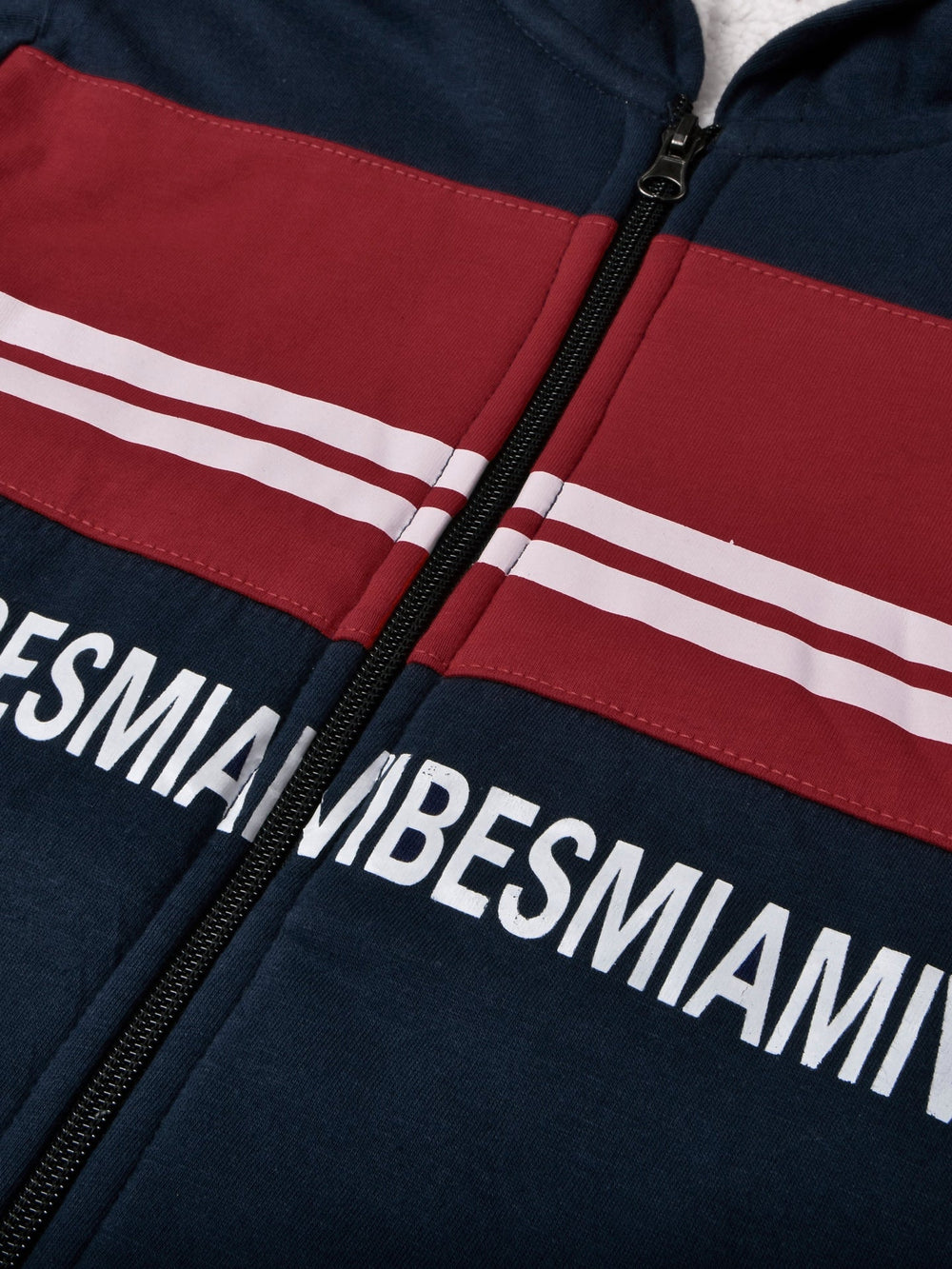 Miami Vibes Stylish Inner Fur Zipper Hoodie For Kids-Navy With Maroon Panel-SP1173/RT2291