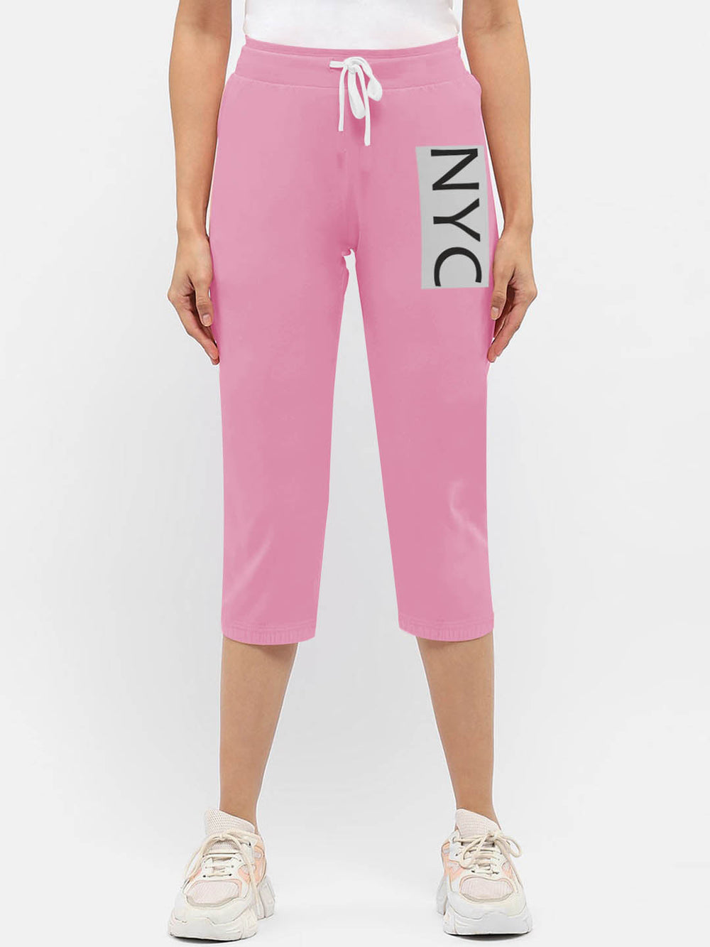 NK Fleece Gathering Bottom Capri For Ladies-Light Pink-SP2015
