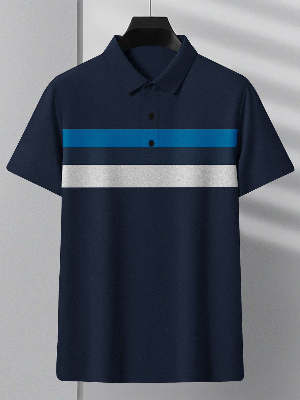 NXT Summer Polo Shirt For Men-Dark Navy With Cyan & White Stripe-BE692/BR12945