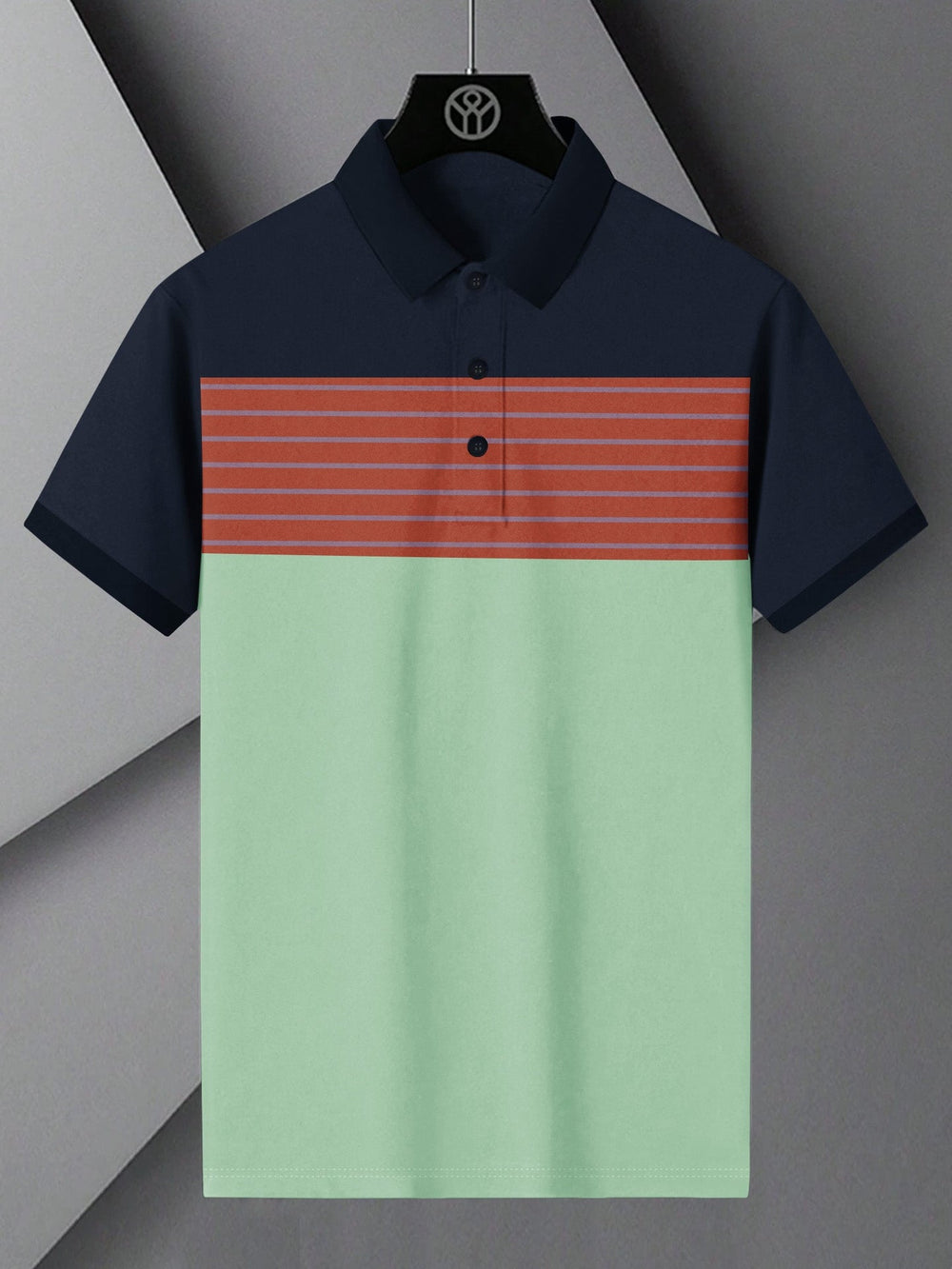NXT Summer Polo Shirt For Men-Green with Orange & Navy Panel-BE812/BR13053