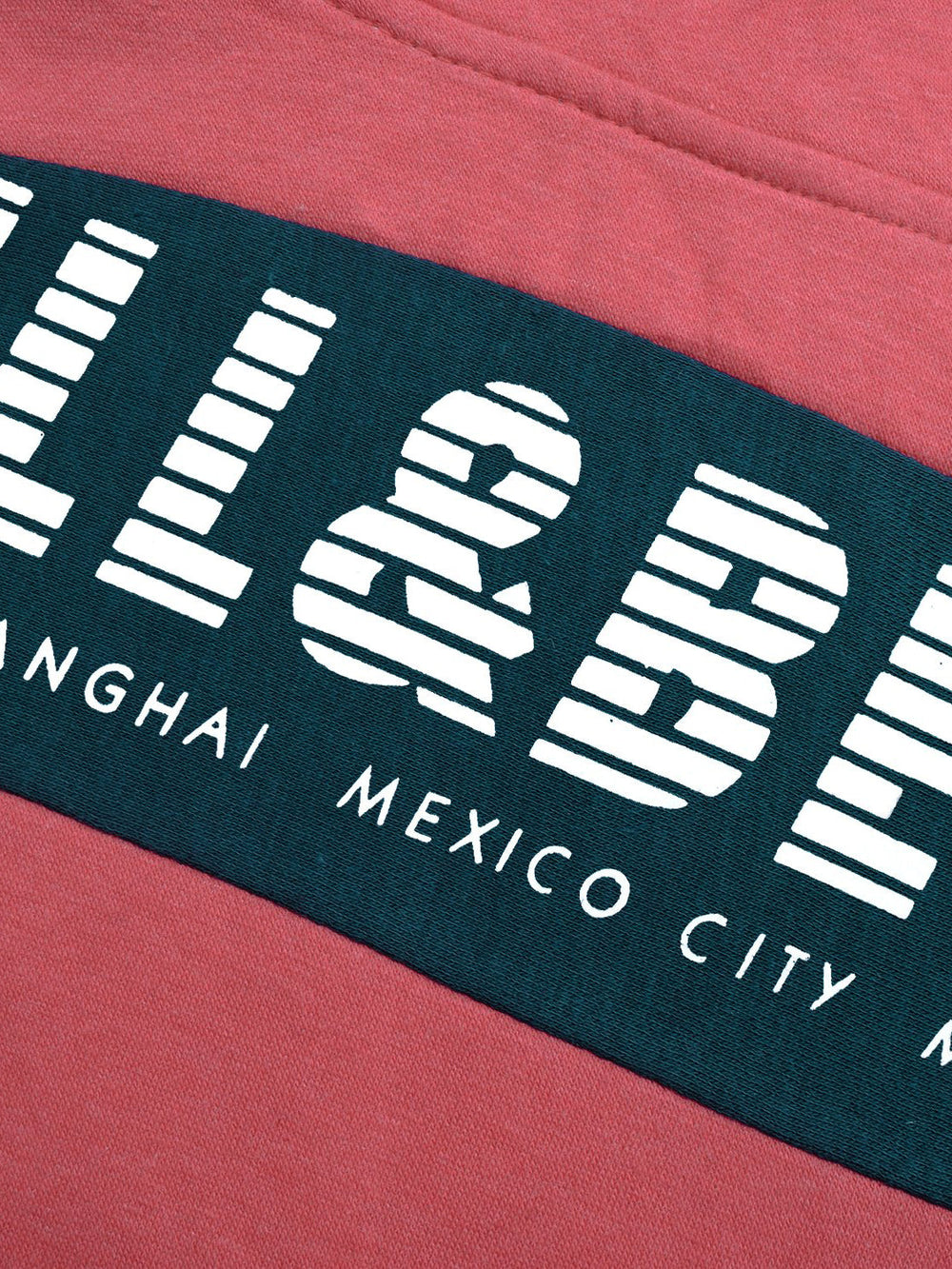 P&B Fleece Pullover Hoodie For Men-Dark Pink Melange With Prussian Blue Panel-SP636/RT2157