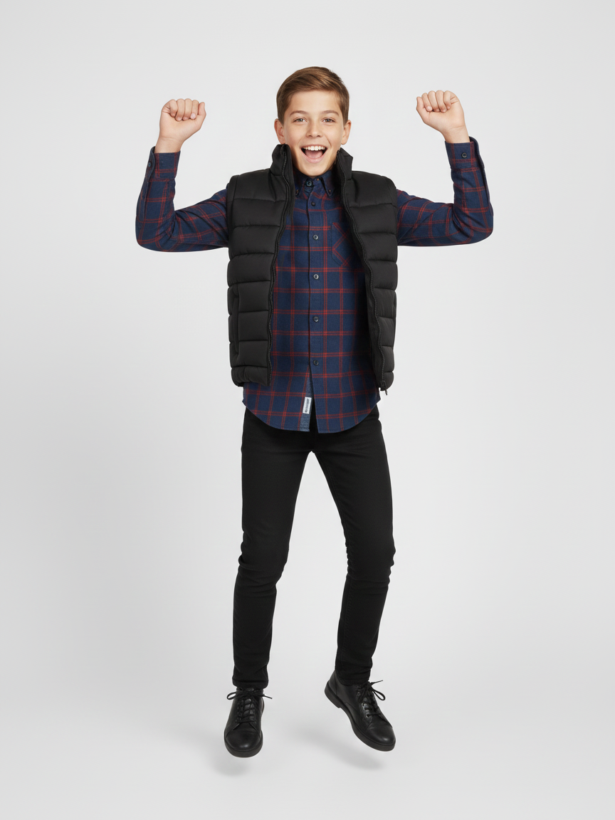 Payper Winter Sleeveless Zipper Mockneck Jacket For Kids-Black-PSJ02