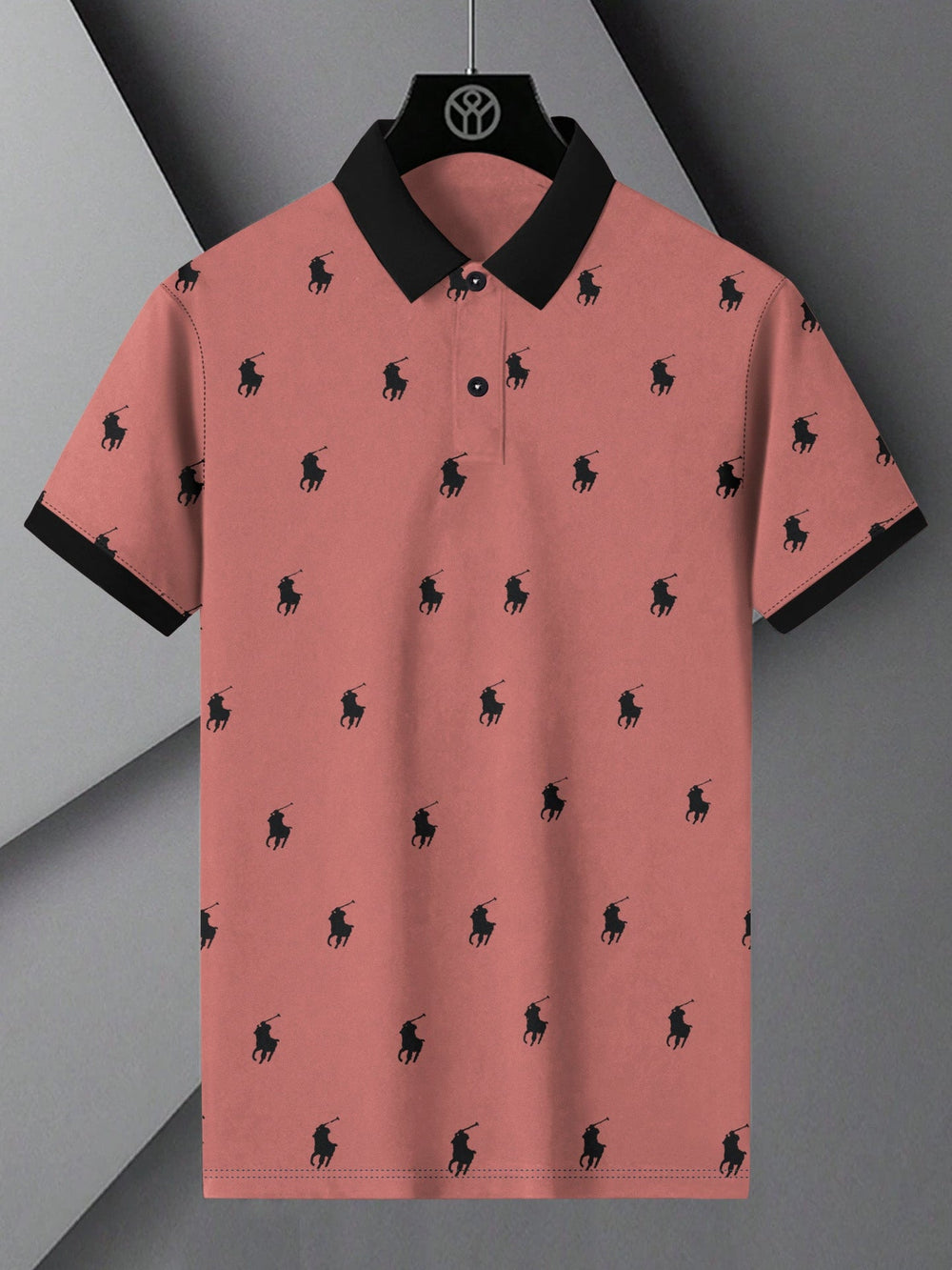 PRL Summer Polo Shirt For Men-Carrot Red with Allover Print-BE751/BR12999