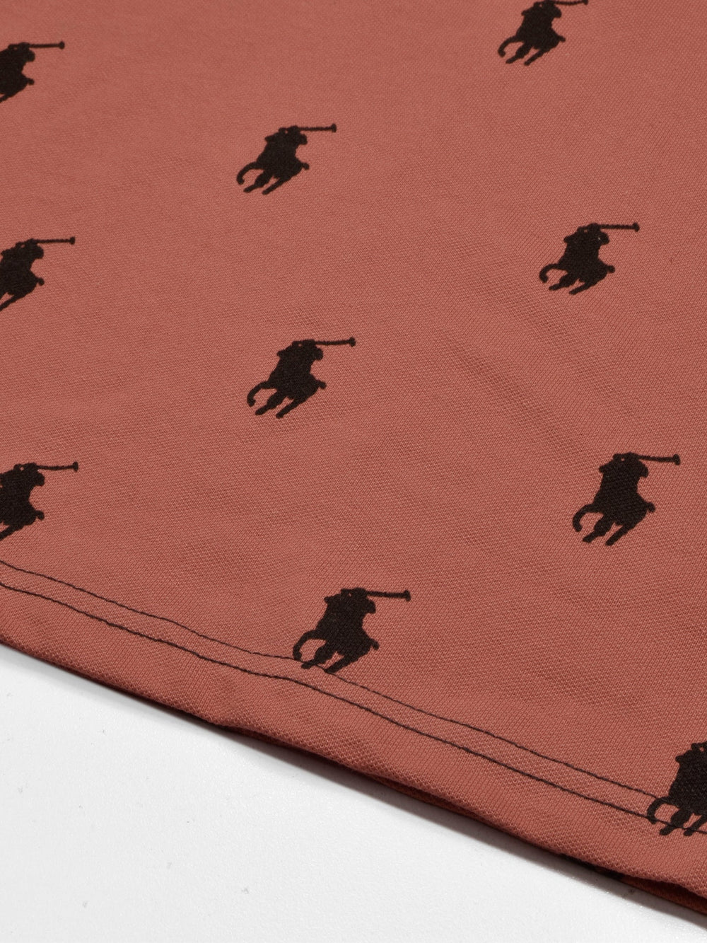 PRL Summer Polo Shirt For Men-Coral Orange with Allover Print-SP1449/RT2337