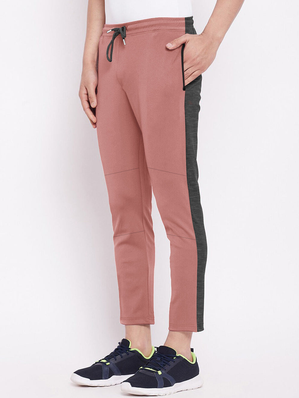 Summer Single Jersey Slim Fit Trouser For Men-Pink With Charcoal Melange Stripe-SP136/RT109