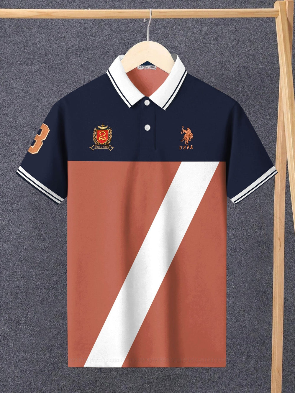 U.S Polo Assn. Summer Polo Shirt For Men-Navy with Coral Orange & White Panel-BE781/BR13028