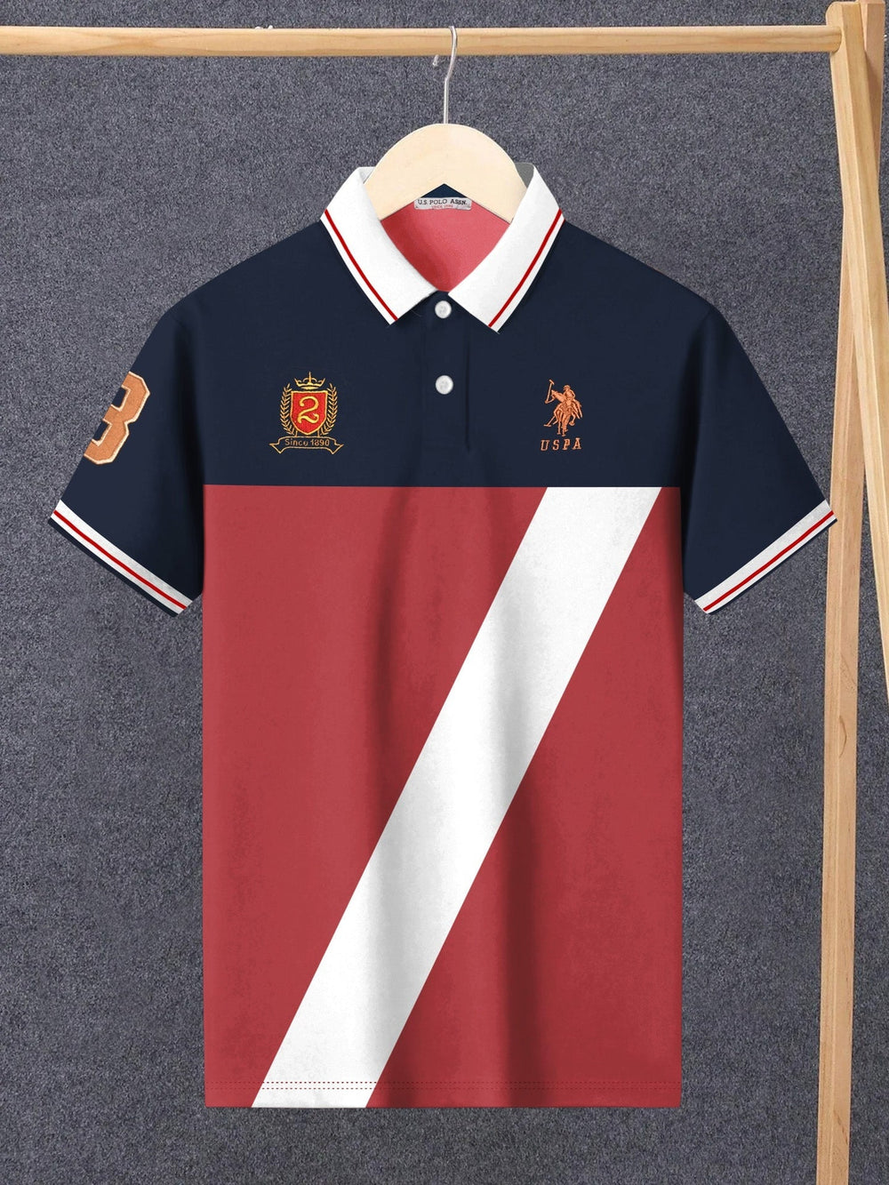U.S Polo Assn. Summer Polo Shirt For Men-Navy with Coral Orange & White Panel-BE782/BR13029
